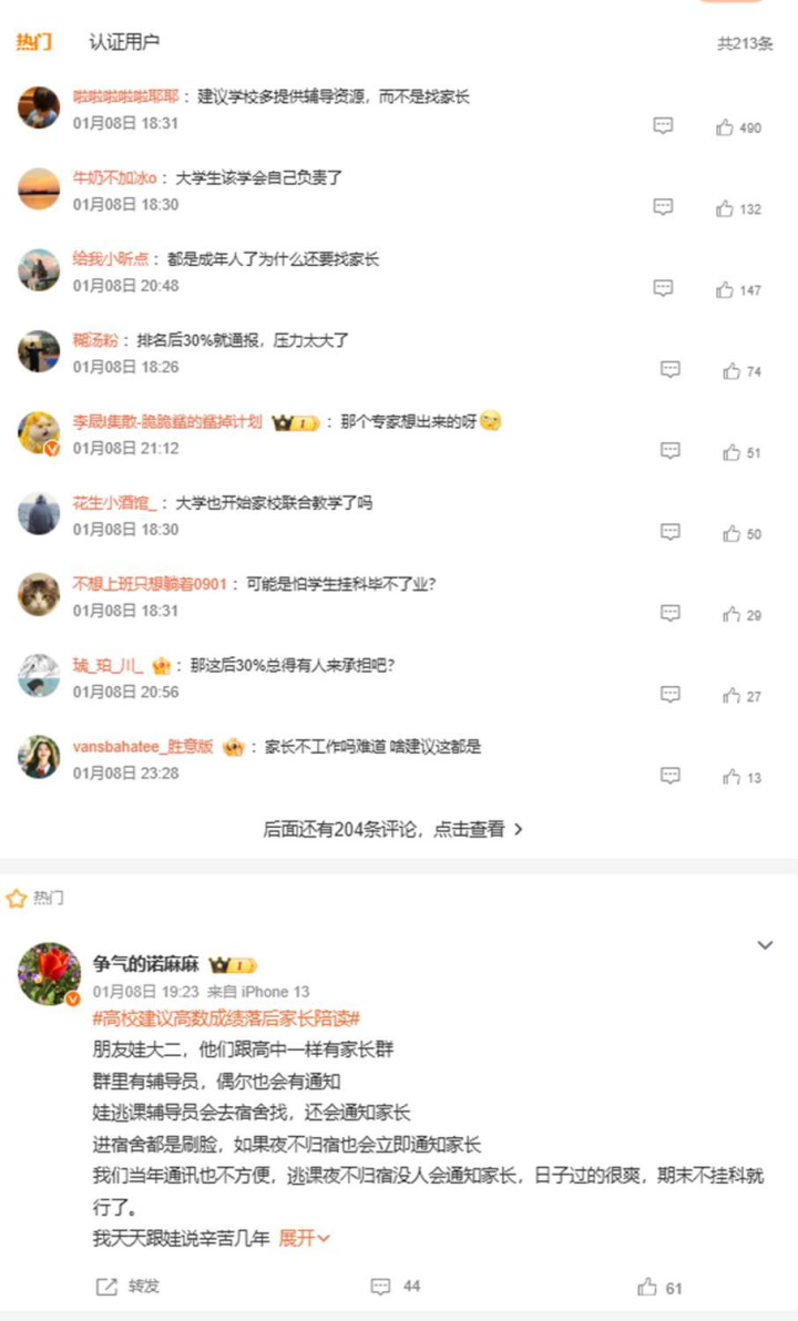 反对的声音占了绝对主流,高校了还找家长?这和小学老师叫家长有啥区别?